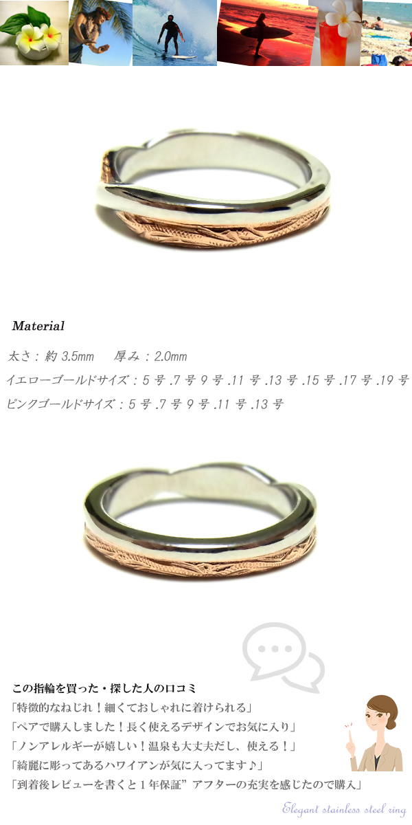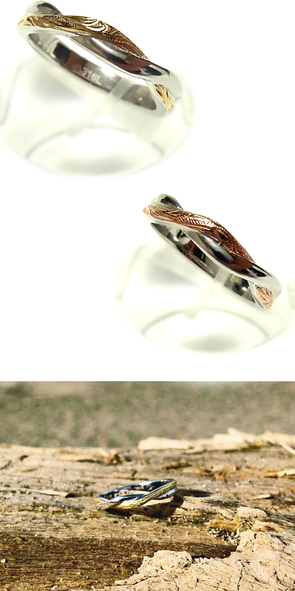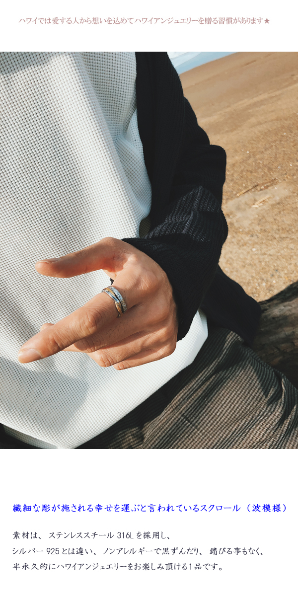 ハワイアンジュエリー リング 指輪 スクロール レディース プルメリア メンズ プレゼント サージカル ステンレス インスタ ラッピング対応 アレルギー対応 ペアリング セットにも