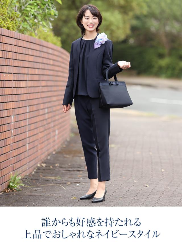 入学式 スーツ ママ レディース ジャケット パンツ 通勤 秋 冬 カジュアル フォーマル 大きいサイズ 洗える 通勤 通学 仕事 ビジネス オフィス 結婚式 七五三 お受験 入園式 卒園式 卒業式 服装 母親 紺 ネイビー シンプル 20代 30代 40代 50代 60代 春 夏 VN-SET-2