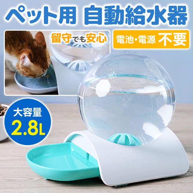 自動給水器 給水器 猫 犬 水やり 水やり器 水やり機 給水機 給水トレイ トレイ 大容量 2.8L 電源 不要 グリーン ペット 自動 オート ペットフィーダー ディスペンサー ペット用 ペット お水 水 水やり 送料無料