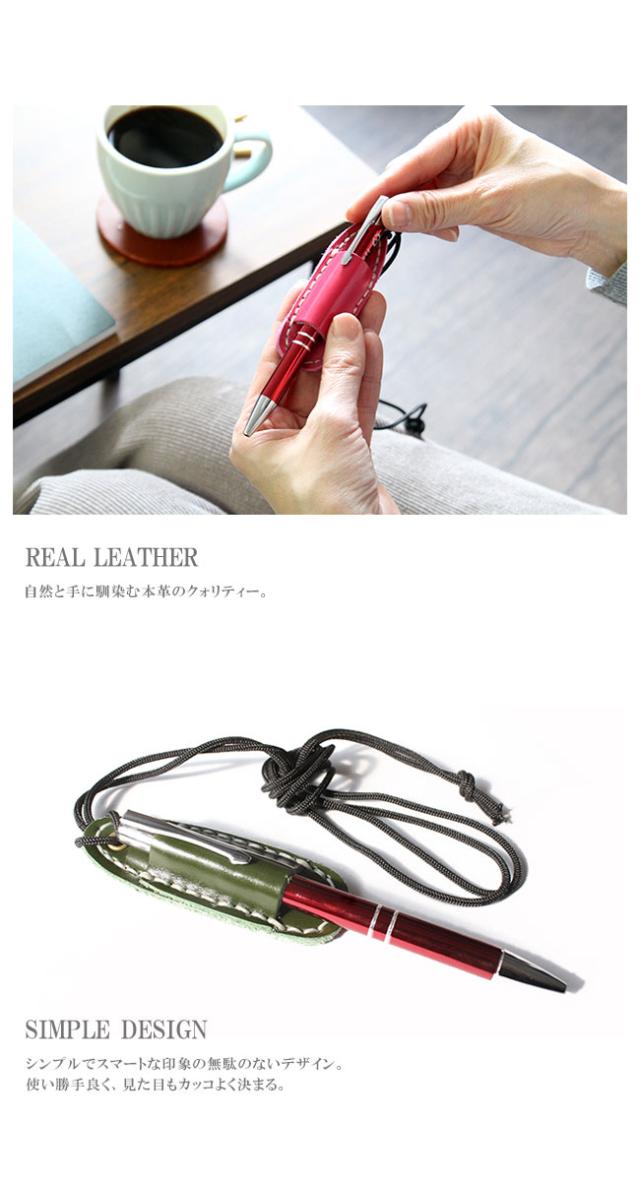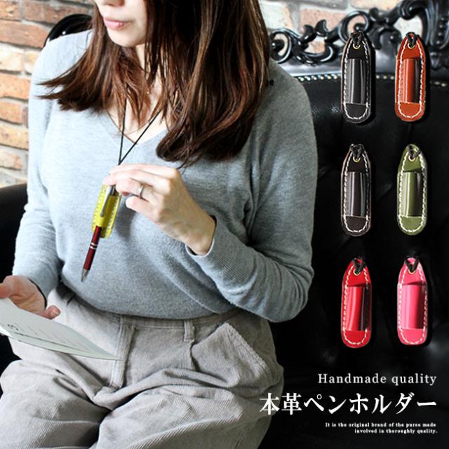 ペンホルダー 本革 メンズ レディース ユニセックス 牛革 首掛け シンプル ブラック ブラウン ダークブラウン グリーン オリーブ ピンク レッド 【ギフト】 ot021