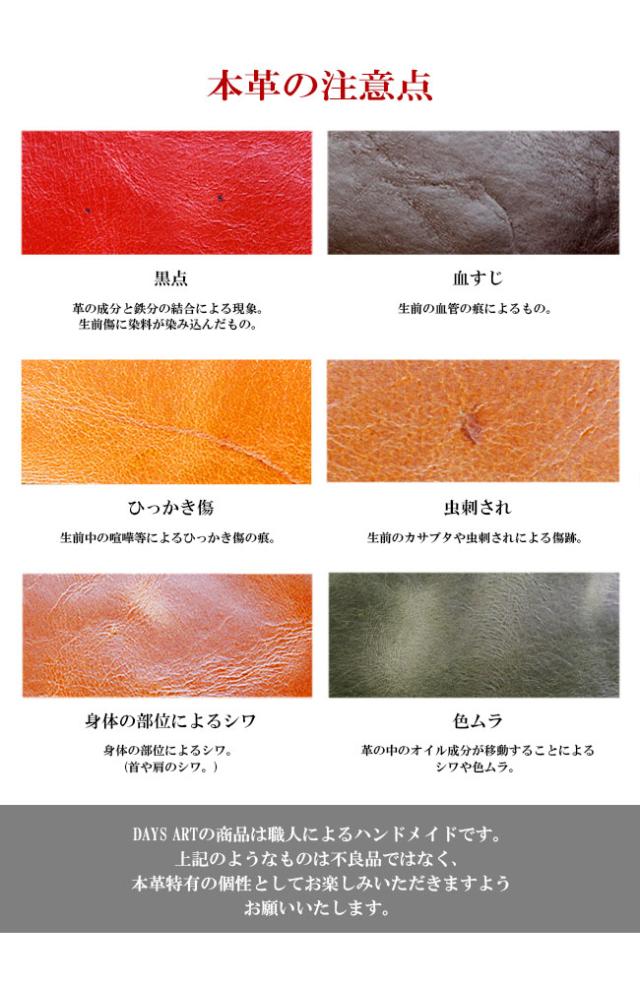 ※天然素材を使用し、ハンドメイドで作成した商品になりますので、革本来のキズや製作時の汚れ等がある場合がございます。海外生産の直輸入品となりますので、日本製に比べ品質基準は低く、作りに雑な部分などございます。また、仕様変更や製作時期によって細部が若干画像と異なる場合がありますのでご了承ください。