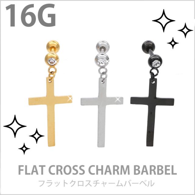 ボディピアス フラットクロスチャームバーベル 16G 十字架 ストレートバーベル