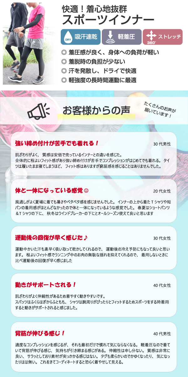 高機能 アンダーウエア スポーツ インナー 軽着圧 ライトコンプレッション