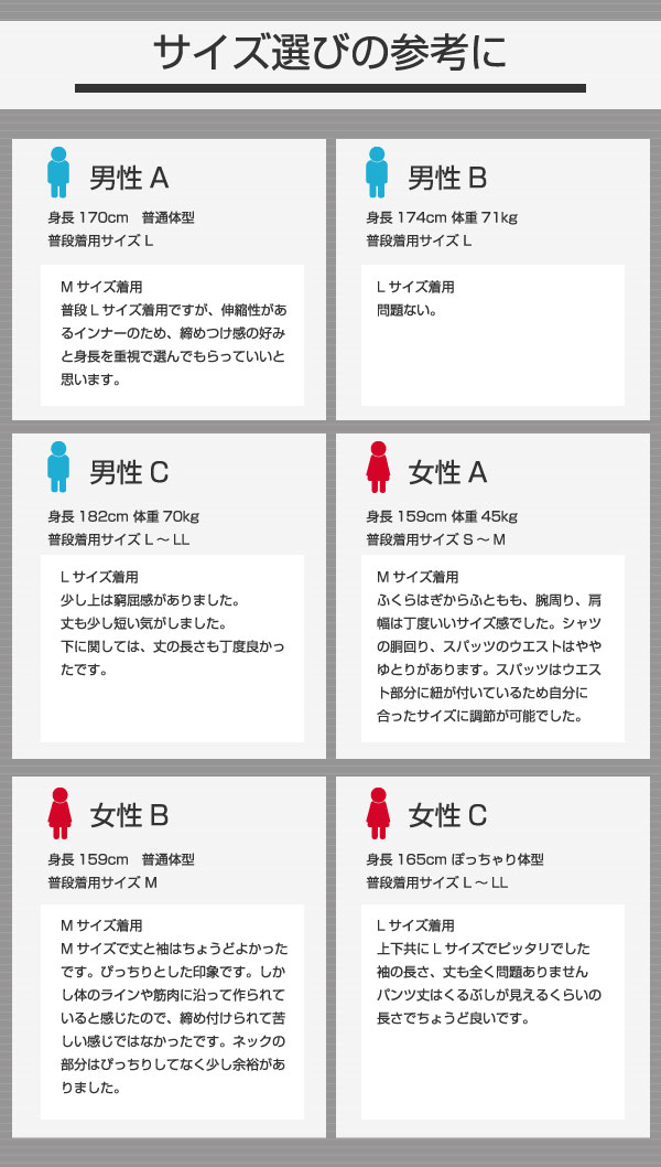 バイタライザーメンズ&レディース サイズ表