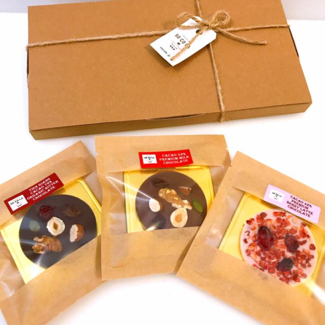期間限定送料無料メール便★無添加チョコギフトボックス カカオ豆からつくったチョコレート3枚セット/カカオ72%ビター1枚/カカオ42%ベリーラテ1枚/カカオ52%プレミアムミルク1枚★無添加★香料・乳化剤・着色料不使用/甘さ控えめ