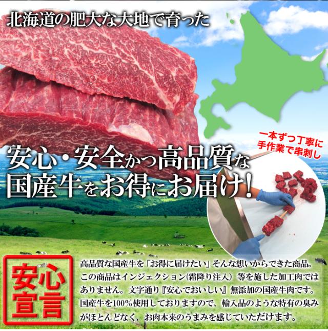 ■北海道の肥大な大地で育った安心・安全かつ高品質な国産牛でお得にお届け!一本ずつ丁寧に手作業で串刺し■品名:国産牛ステーキ串60g■原材料名:牛肉(国産/北海道)■内容量:60g×5本■賞味期限:賞味期限2025年7月7日の為(冷凍)