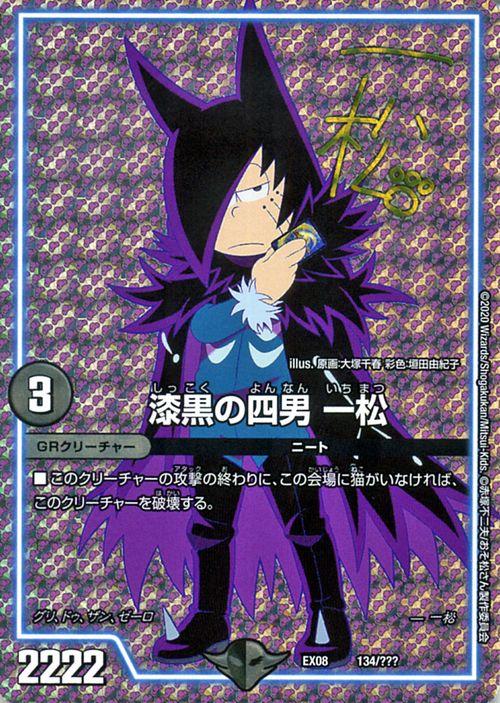 デュエルマスターズ 漆黒の四男 一松(サイン) 謎のブラックボックスパック(DMEX08) BBP | デュエマ 闇文明 GRクリーチャー おそ松さん