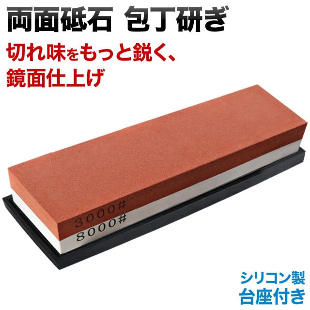 包丁研ぎ石 砥石 包丁研ぎ器 両面砥石 仕上げ石 #3000 #8000 シリコン台座 2個付き 包丁砥石 包丁研ぎ 研ぎ器 両刃 中砥石 鏡面仕上げ