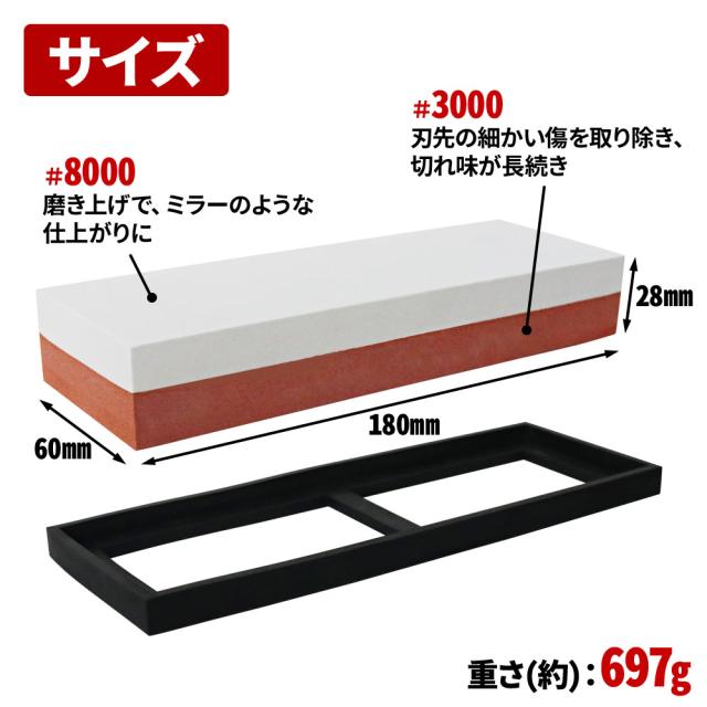両面砥石 仕上げ石 #3000/#8000 シリコン台座2個付き