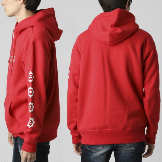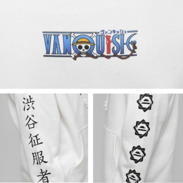 フードを上げると「VANQUISH」をONE PIECEのロゴでプリントし、コラボレーションならではのデザインもポイント。