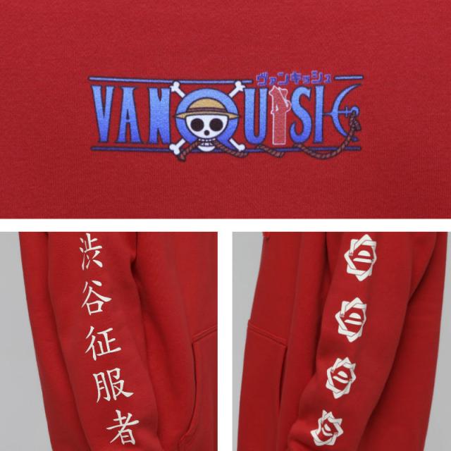 送料無料 ワンピース コラボ VANQUISH ヴァンキッシュ ONE PIECE VANQUISH Luffy ルフィ Hoodie 〜ワノ国編〜 パーカー フーディー メンズ レディース ユニセックス カジュアル ストリート 和 漫画 アニメ キャラクター 麦わら 裏毛