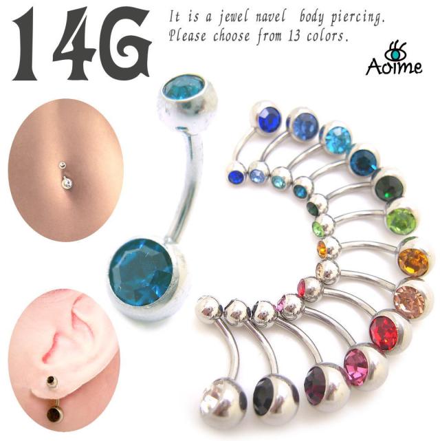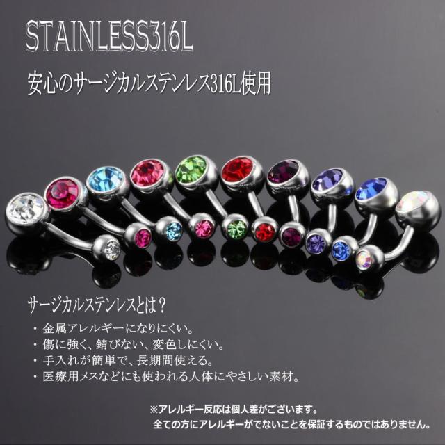 ヘソピアス へそピアス 14G 14ゲージ バナナバーベル ボディピアス ネイブル ヘソピ ダブルジュエル bp1434--