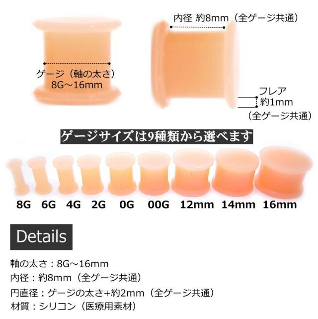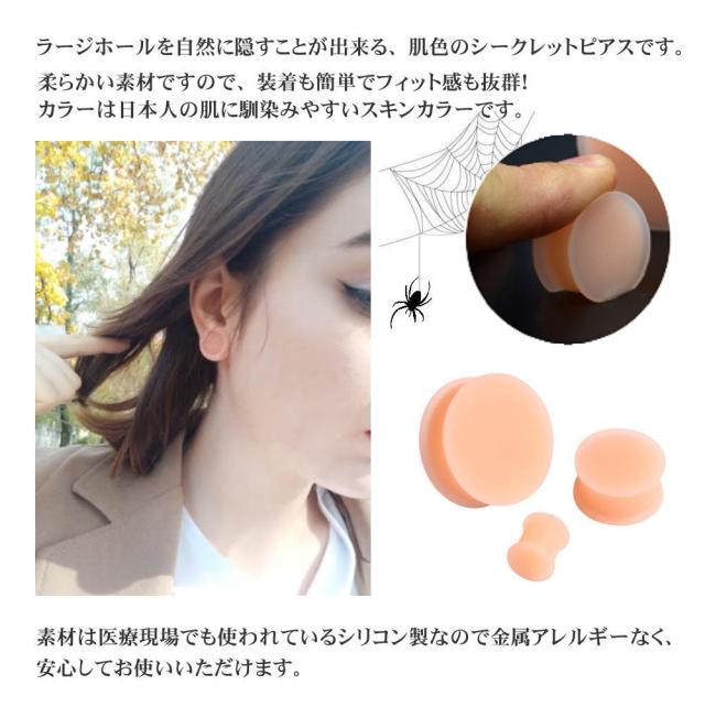肌色ピアス スキンカラー シリコン リテーナー ダブルフレア プラグ ボディピアス ラージホール シークレットピアス uv3--
