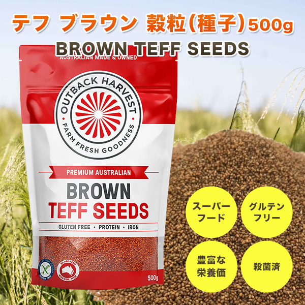 テフ 穀粒 (種子) ブラウン 500g BROWN TEFF SEEDS スーパーフード グルテンフリー 低GI オーストラリア産 殺菌済 お米に混ぜて栄養満点「テフごはん」キヌアを超える豊富な栄養価 雑穀 プロテイン 美容 ダイエット