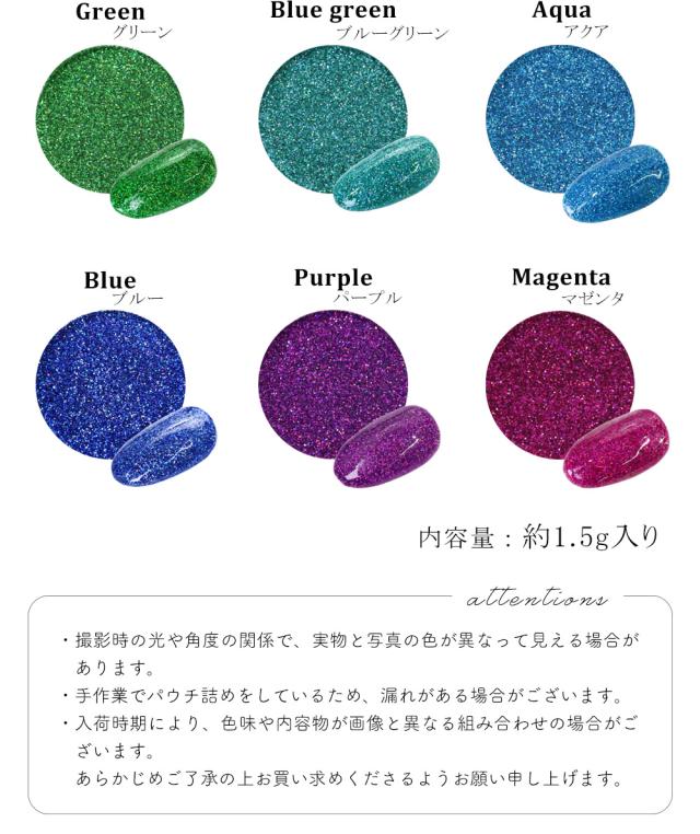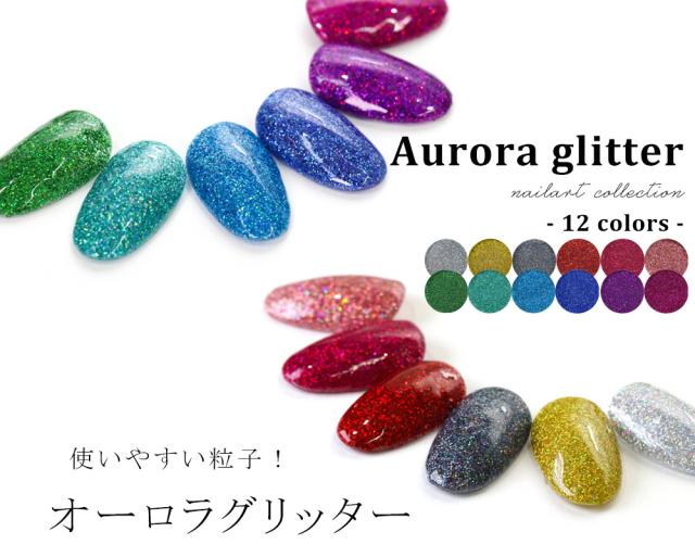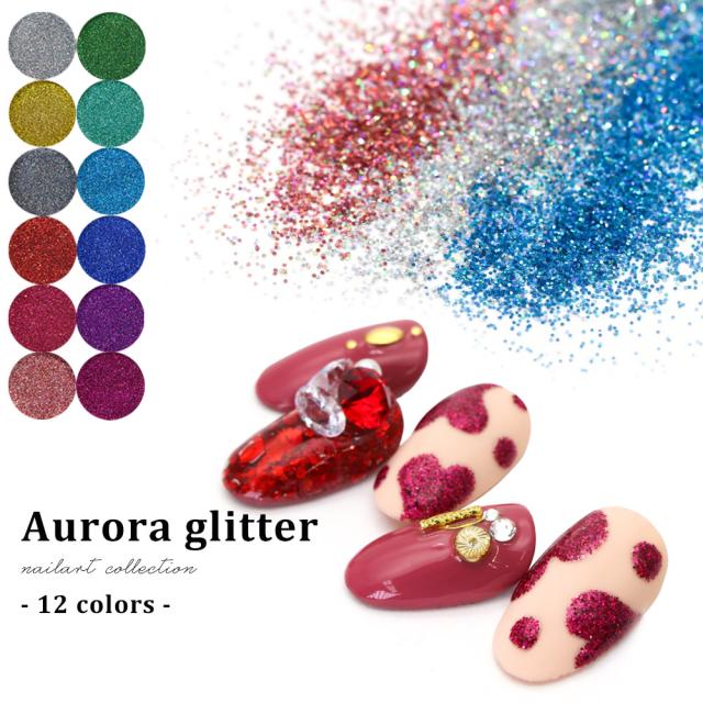 ネイルアート 高品質オーロラグリッター 約1.5g 全12色