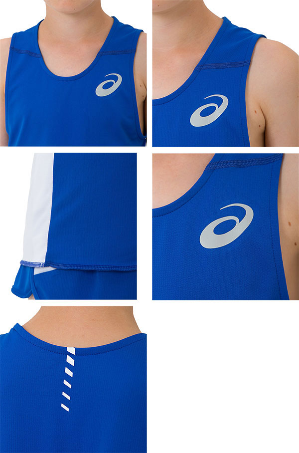 汗処理機能と優れた通気性を併せ持つ、ジュニア用ランニングシャツです。高密度で編み上げた薄手素材が、汗を多くかくシーンのベタつき感を軽減。