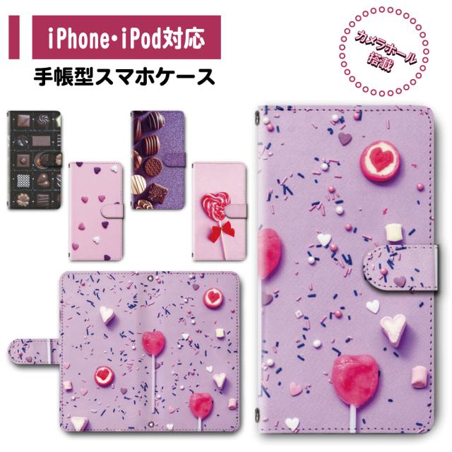 スマホ ケース カバー 手帳型 iPhone iPod iPhone11 iPhoneSE アイフォン 送料無料 スイーツ チョコ マシュマロ お菓子 キャンディー ロリポップ / dc-391