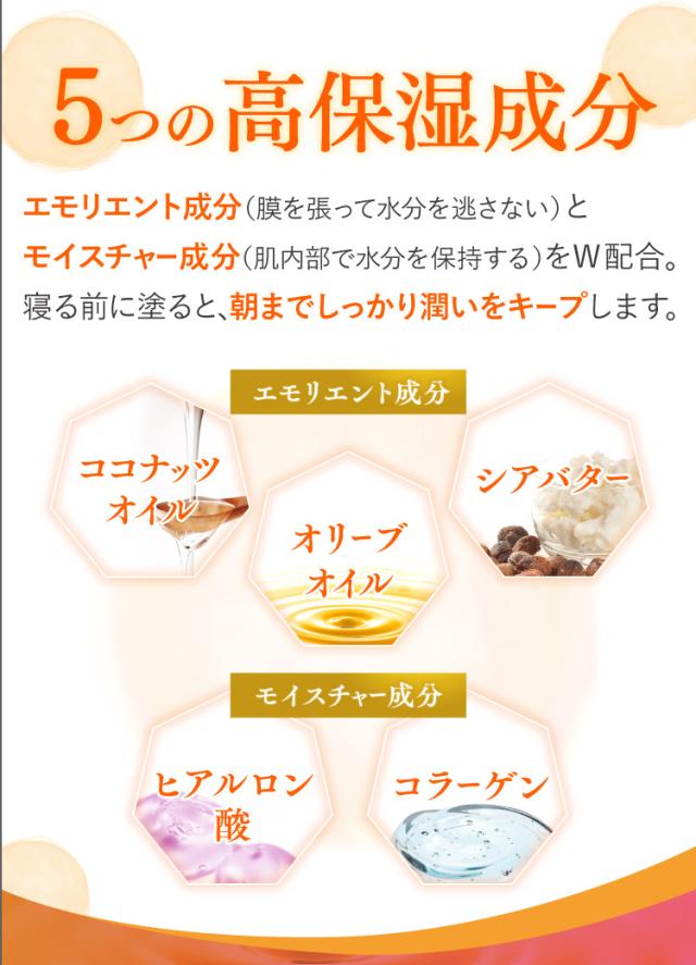 【有効成分】水溶性プラセンタエキス、グリチルリチン酸2K【その他の成分】精製水、ジメチコン、シクロペンタシロキサン、BG、エチルヘキサン酸セチル、濃グリセリン、架橋型ポリエーテル変性シリコーン混合物、塩化Na、水溶性コラーゲン液-4、サクシニルアテロコラーゲン液、党参抽出物加水分解液、加水分解コラーゲン末、プルーン酵素分解物、油溶性甘草エキス(2)、ユキノシタエキス、ウメ果実エキス、キウイエキス、アセロラエキス、ヤシ油、テトラヘキシルデカン酸アスコルビル、パーシック油、シア脂、天然ビタミンE、オリブ油、スターフルーツ葉エキス、加水分解ヒアルロン酸、カモミラエキス-1、チンピエキス、シルバーパイン果実エキス、アロエエキス-2、ヨクイニンエキス、アルピニアカツマダイ種子エキス、アーティチョークエキス、エイジツエキス、シャクヤクエキス、ワレモコウエキス、トウキエキス-1、アロエエキス-1、桑エキス、クララエキス-1、人参エキス、フェノキシエタノール、香料(オレンジ精油、レモン精油、ベルガモット精油)