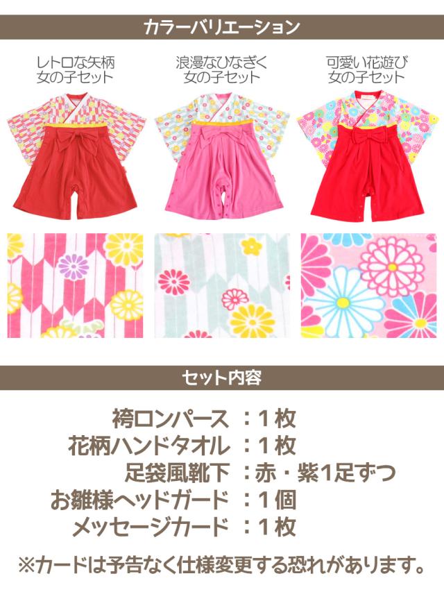 ひな祭り 袴 ロンパース ギフトセット 赤ちゃん ベビー 女の子 カバーオール タオル 靴下 ヘッドガード 出産祝い プレゼント 贈り物 ギフト 送料無料