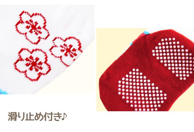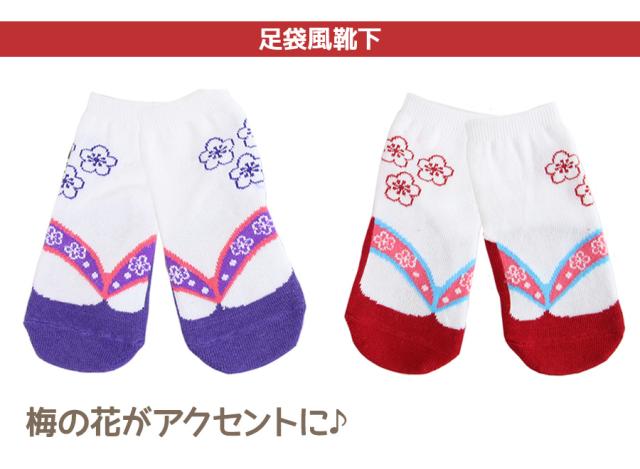 足袋風ソックス:赤色1足、紫色1足(70cmには9-12cm・80、90cmには12-15cm)