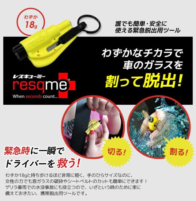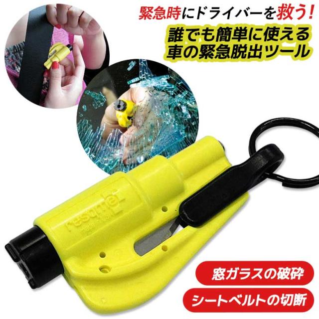 【レスキューミー(イエロー)】 緊急脱出用ツール 防災ツール 脱出ハンマー シートベルトカッター ガラス割り 軽量 コンパクト 車載用 簡単 安全 カー用品 車内 地震 震災 災害 水害 水没事故 衝突事故 角利産業