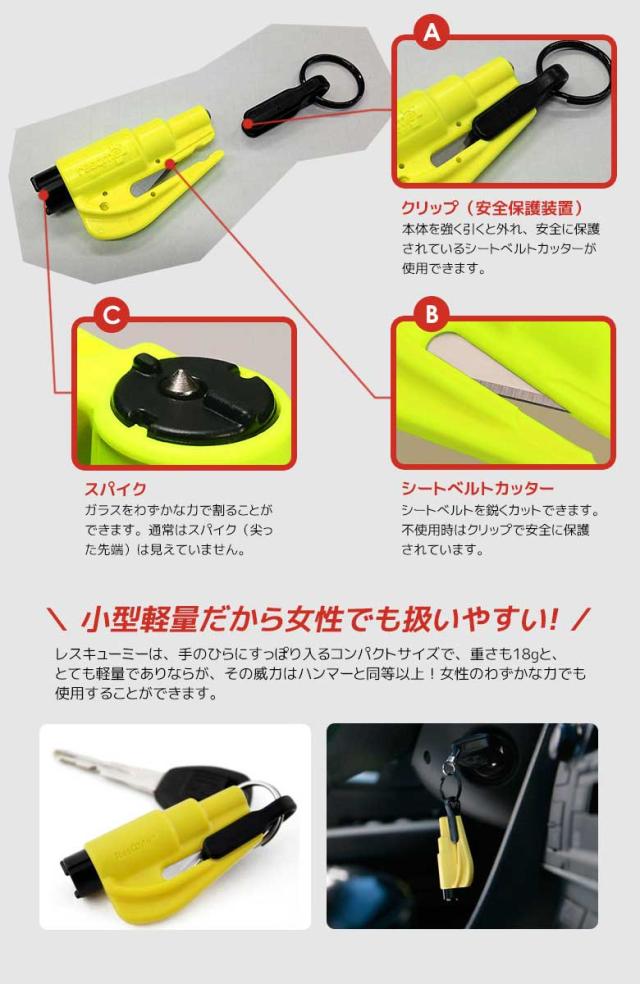 使い方も簡単で、女性の力でも問題なくウィンドウの破砕、シートベルトのカットができます。