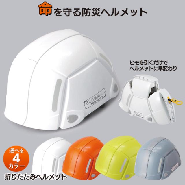 防災ヘルメット 【折りたたみヘルメット(No.100)】 ホワイト グレー オレンジ ライム 飛来・落下物用防災グッズ 非常用 防災用品 避難用品 災害時 緊急時 地震対策 角利産業