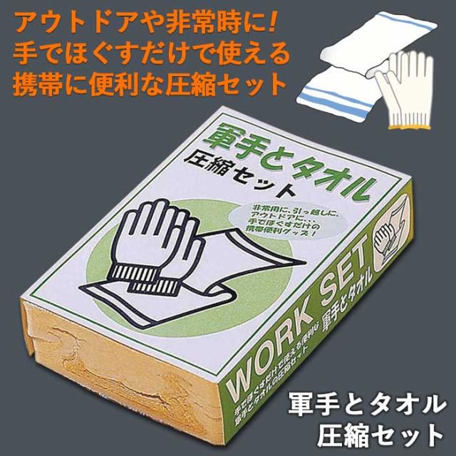 防災グッズ 【軍手とタオル】 圧縮セット 非常用持ち出し袋 携帯便利グッズ 災害対策 備蓄用 防災用品 避難用品 避難グッズ 災害時 緊急用 非常用 角利産業