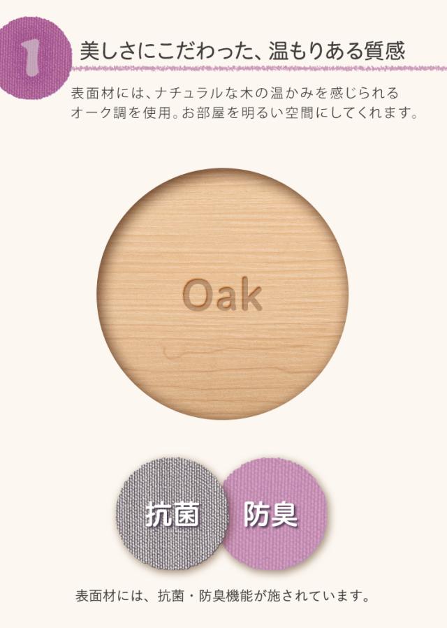 やさしいオーク調がお部屋にナチュラル感をもたらし、リラックスした空間を実現します。