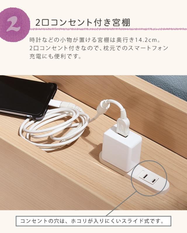タブレットも立て掛けておける宮棚には2口コンセントもついて便利です!
