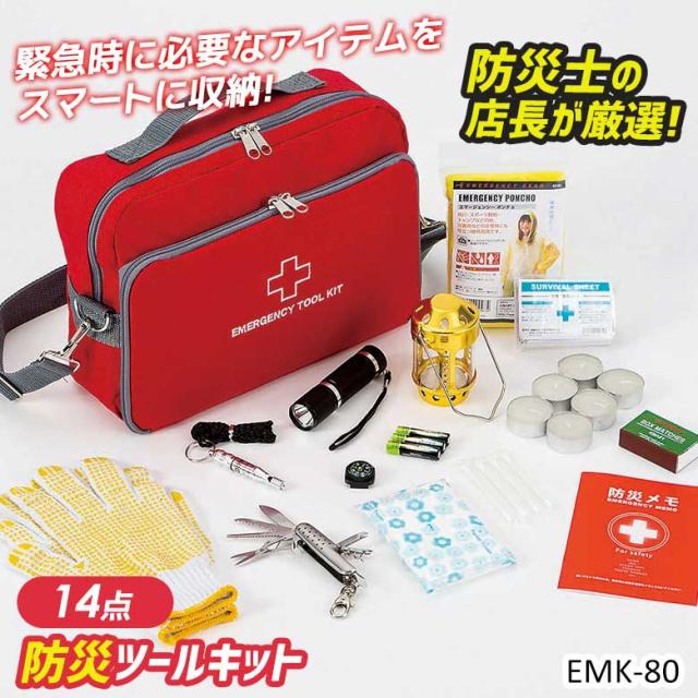 防災セット 【エマージェンシーツールキット(EMK-80)】 非常用 持ち出し袋 防災用品 避難セット 避難袋 地震対策 防災リュック 角利産業
