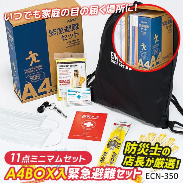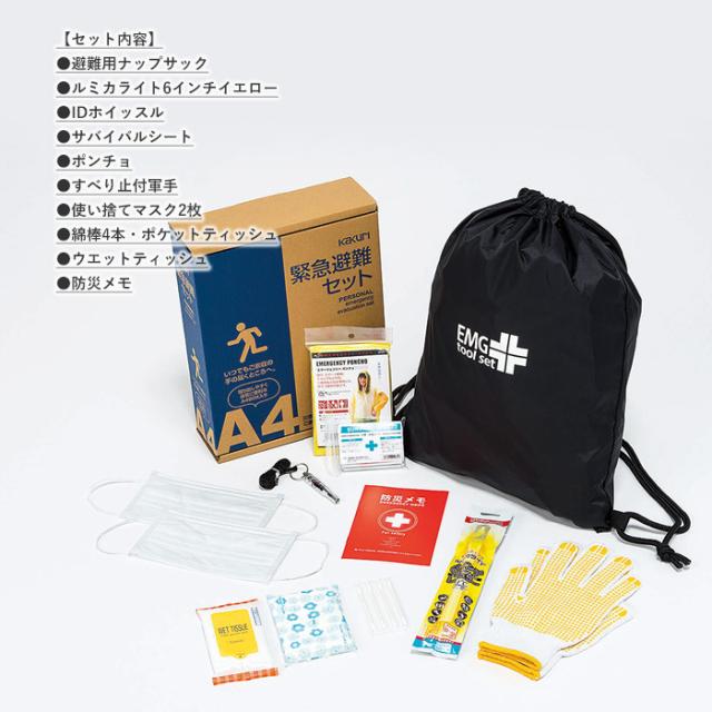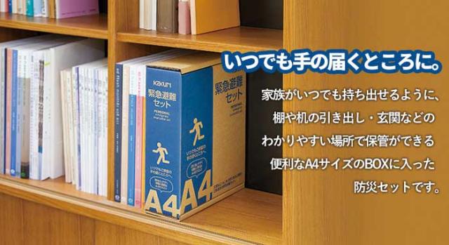 非常持出用のミニマムセット。コンパクトサイズで机の引き出しにも収納可能。