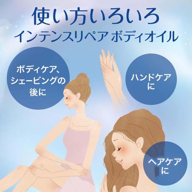 ・その後にインテンスリペアシリーズのボディエマルジョンを重ねて使用することでさらなるうるおい感を実感できます。