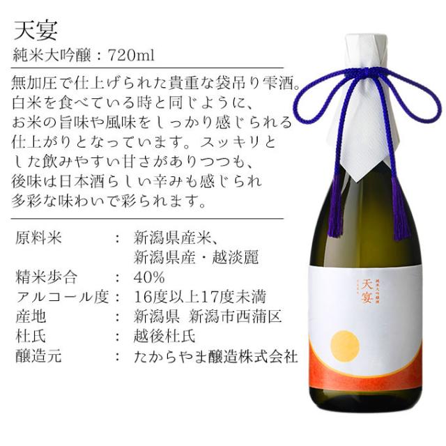 日本酒 純米大吟醸 天宴 720ml 退職祝い ギフト 男性 女性 上司 誕生日 プレゼント 新潟地酒 内祝い お返し 結婚祝い 贈り物 送料無料