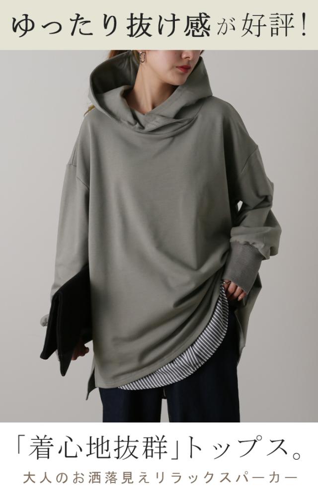 ボリューム襟が可愛い柔らかプルオーバーパーカー