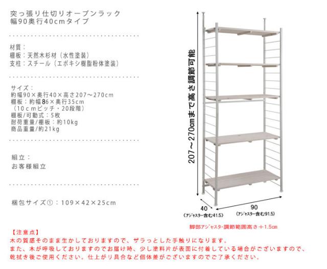 SNOW スノー 突っ張り仕切りオープンラック 幅90奥行40cmタイプ