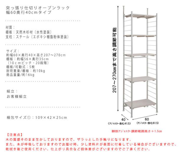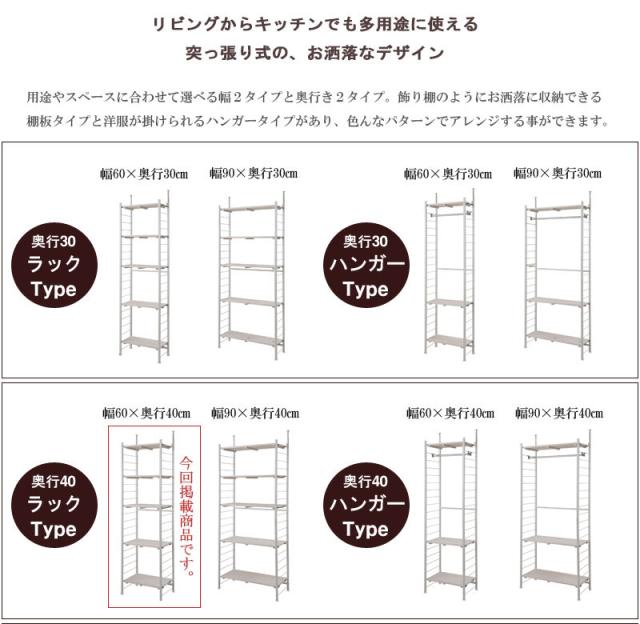 SNOW スノー 突っ張り仕切りオープンラック 幅60奥行40cmタイプ