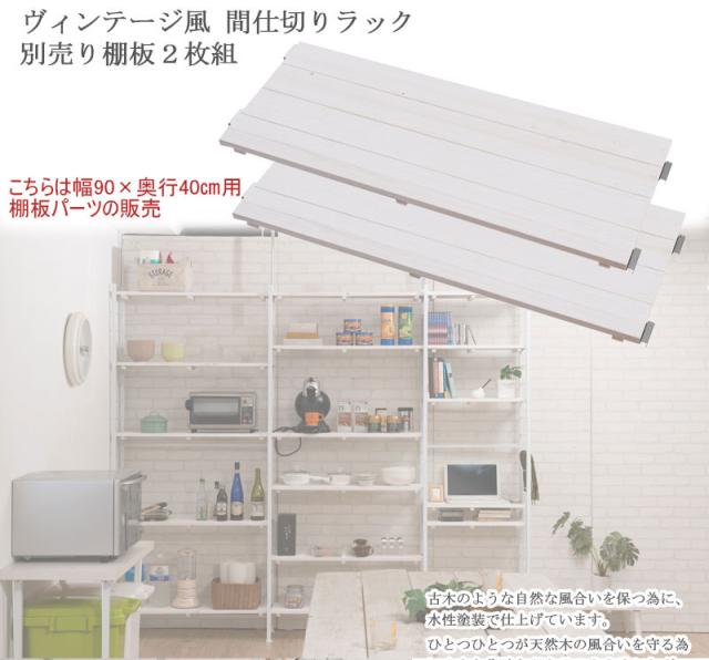 SNOW スノー 突っ張りラック 幅90奥行40cm用 棚板 2枚組 (オプションパーツ) (シェルフ オープン フリー ディスプレイ 突っ張り 壁面収納 リビング カントリー ナチュラル ホワイト ヴィンテージ アンティーク ヨーロピアン 西海岸 日本製 国産)