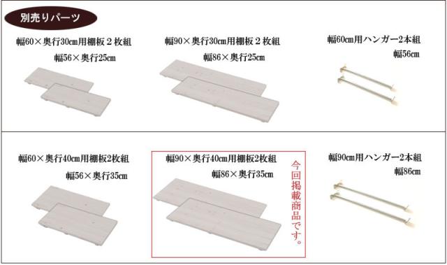 SNOW スノー 突っ張りラック 幅90奥行40cm用 棚板 2枚組 (オプションパーツ)