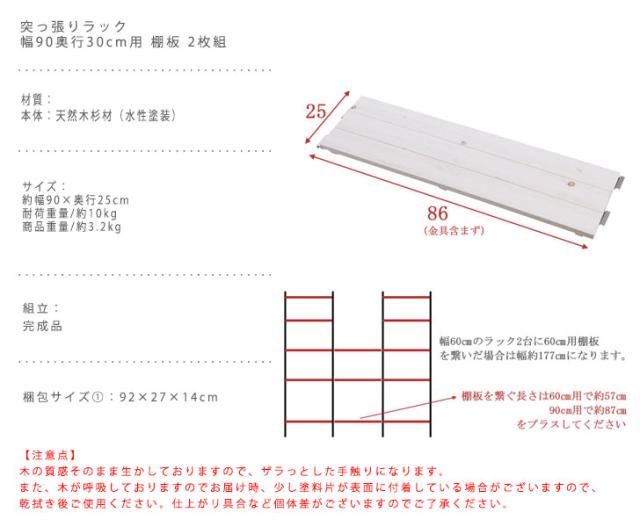 SNOW スノー 突っ張りラック 幅90奥行30cm用 棚板 2枚組 (オプションパーツ)