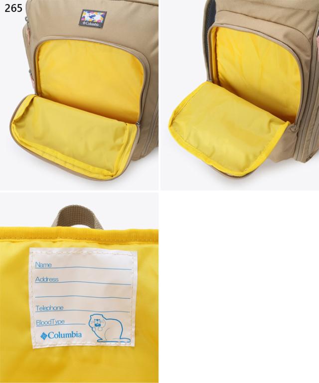 開口部は非常に大きく、上から下まで配した大型のU字ファスナーでフロント部分まで開くことができ、子供でも荷物の出し入れがしやすい構造になっています。フロントとショルダーハーネスには夜間でもライトなどの光を反射して存在を周知するリフレクターを配備。チェストストラップにはホイッスルも備えています。フロントとサイドには大型のポケットがあり、さらにマチを広げられるファスナーも設けているので状況に応じて容量アップが可能です。内側には名前を記入できるネームラベル付き。背面はクッション性と通気性のあるパネルで背負い心地も快適です。優れた機能で子供のアクティビティを楽しくサポートするアイテムです。