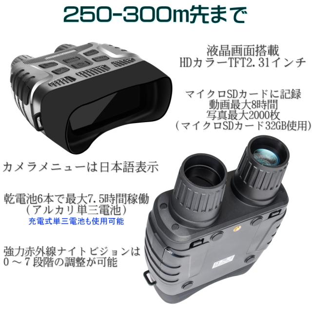 TB-NV80 双眼鏡 ナイトビジョン 赤外線 LED 録画 写真 撮影 記録 250 300 m メートル 照射 見える スコープ night vision 1280 960 720 640 480 P binoculars 双眼鏡 スコープ アウトドア 屋外 動物 ウォッチ バード 深夜 漆黒 暗 闇 夜 鳥 探す 見つける ナイト 乾電池 電池 バッテリー 6本 駆動 稼働 7.5 時間 最大 簡単 操作 防犯 カメラ 監視 見守り 様子 見る 安心 おすすめ お薦め camera セキュリティ 安全 ホーム 防犯カメラ 監視カメラ 望遠 長時間