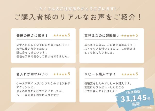 - 注文から発送まで早かった。イメージ通り素敵なデザインでした。ショルダーも付いていて使いやすい。お店の方の心配りが良かった。お店もケースも気に入ったのて、色違いで購入を検討中。