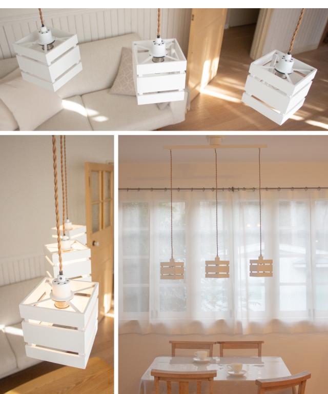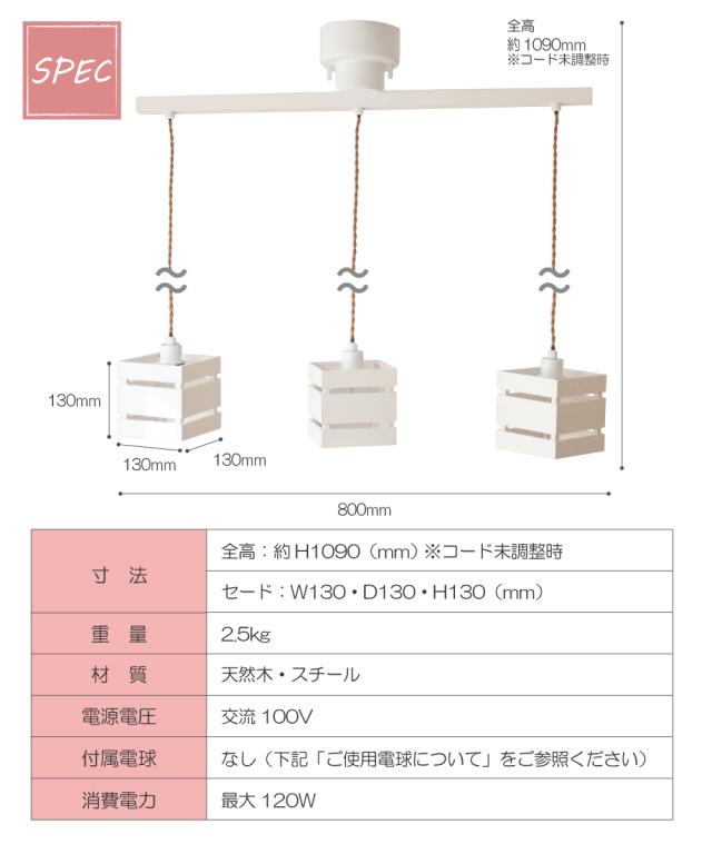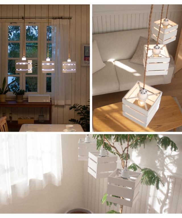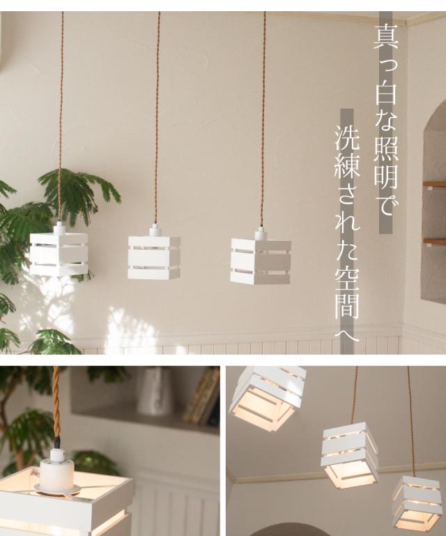 【Ampoule】 ペンダントライト 照明 おしゃれ LEDペンダントライト 3灯 天然木 リビング ダイニング 寝室 カフェ ナチュラル シンプル 照明器具 天井照明 ホワイト 白 四角 スクエア 木箱 LED 明るい パフ Pahuf 3P WH