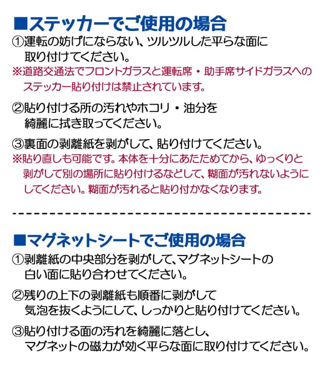 | セット内容 | ステッカー / マグネットシート ※前後2枚セットではありません |