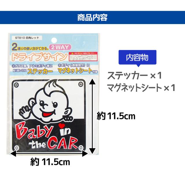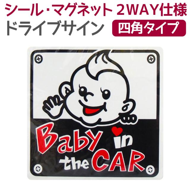 ステッカー シール 2way ドライブサイン 四角タイプ マグネット 赤ちゃん ベビーインカー セーフティーサイン カー用品 メール便送料無料