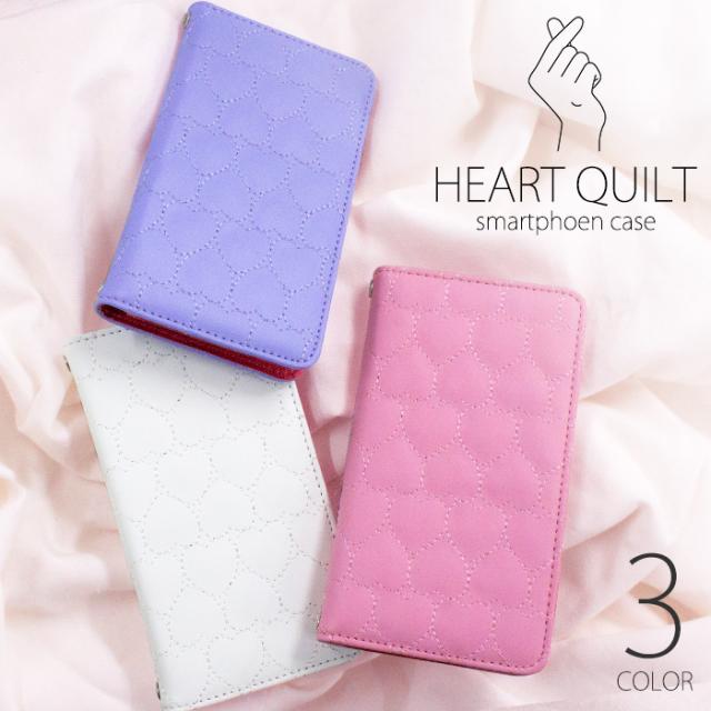 らくらくスマートフォン me F-01L ケース ベルトなし スマホケース 手帳型 手帳型ケース らくらくホン シニアフォン スマホカバー フェイクレザー カバー スマホ 携帯ケース PUレザー α ハートキルト 携帯カバー fj6334