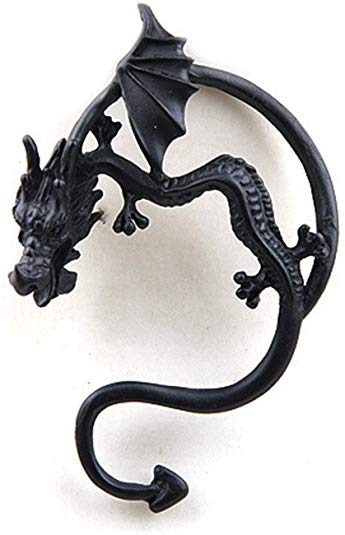 片耳用 ドラゴン 龍 イヤー カフ ピアス ★ イヤリング イヤーフックピアス 耳飾り 男女兼用 アクセサリー コスプレ 黒 B40