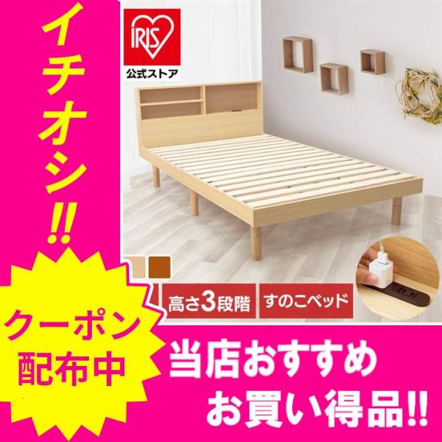 \1000円OFFクーポン!~2/19 9:59/ベッド シングル すのこベッド 収納棚付き SKSB-S ベッドフレーム スノコベッド 収納棚 コンセント付き ベッドボード シンプル S シングルベッド 新生活 送料無料 アイリスプラザ [int]
