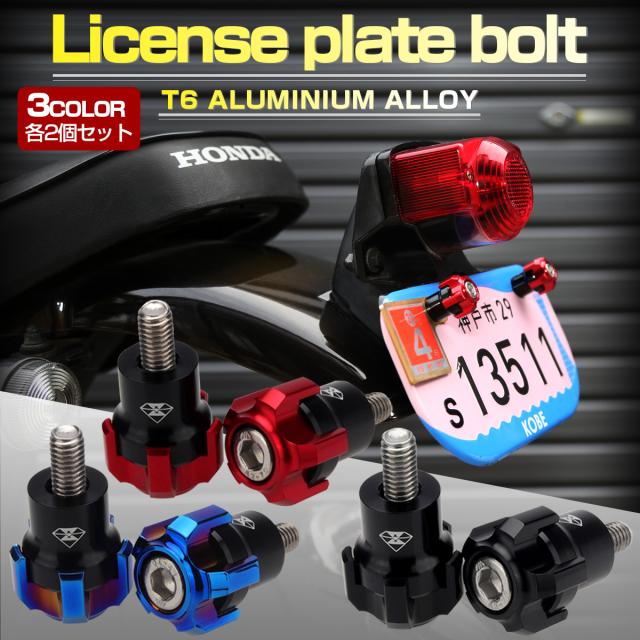 ナンバーボルト M6 ナンバープレートボルト T6アルミ 3色 ドレスアップ 2個セット S-773